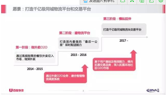 流傳出來的商業計劃書中,百度外賣試圖把自己包裝為千億級別的同城物流平臺