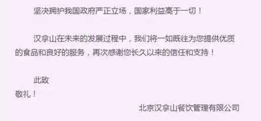 樂天公司的危機公關再怎么做也無法在一時平復中國民眾的憤憤,做韓國料理的餐企漢拿山的危機公關事件倒是可以拿出來八卦。
