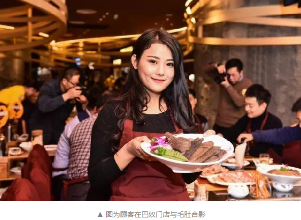 “毛肚是火鍋的頭牌,巴奴的招牌。因為巴奴,毛肚火遍全國。”